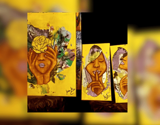 I paint these faces as an act of introspection and inner silence. The figures appear with their eyes closed or covered because they are not meant to look outward, but to inhabit their own emotional world. The yellow background represents energy, life, and awareness—a space where emotions can surface freely.